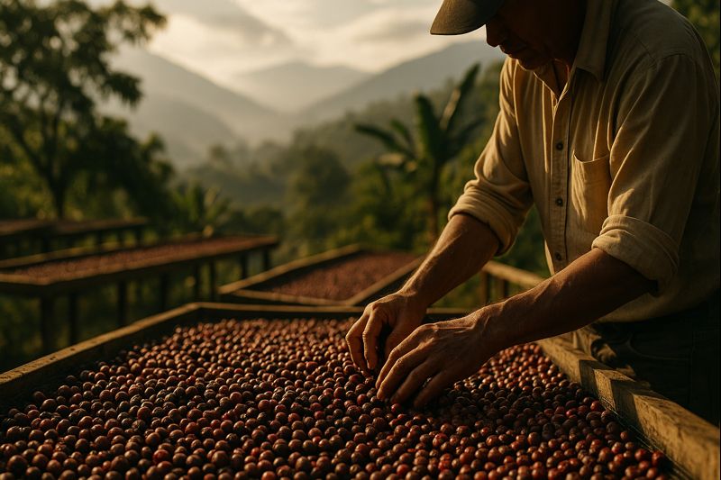 Eso también explica por qué el natural es un proceso exigente. Al estar expuesto al ambiente durante días o semanas, el control del volteo, la capa de secado, la higiene y la consistencia del clima se vuelven determinantes para que el resultado sea frutal y limpio, y no una taza con defectos fermentados.